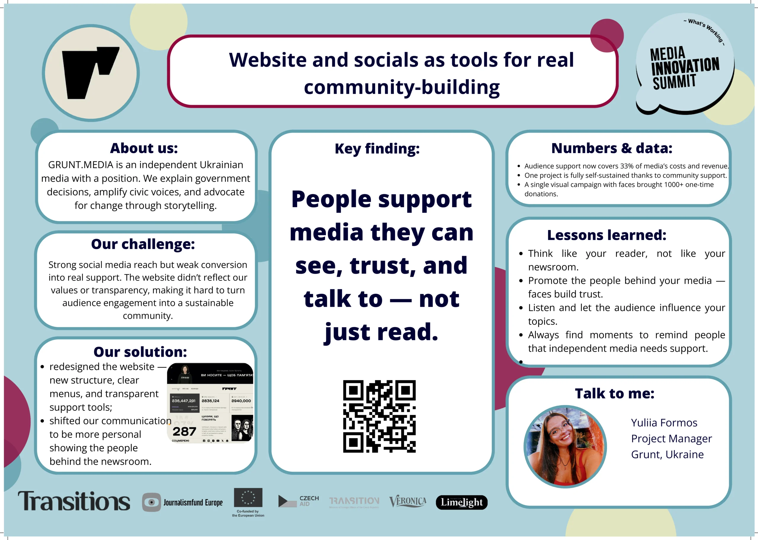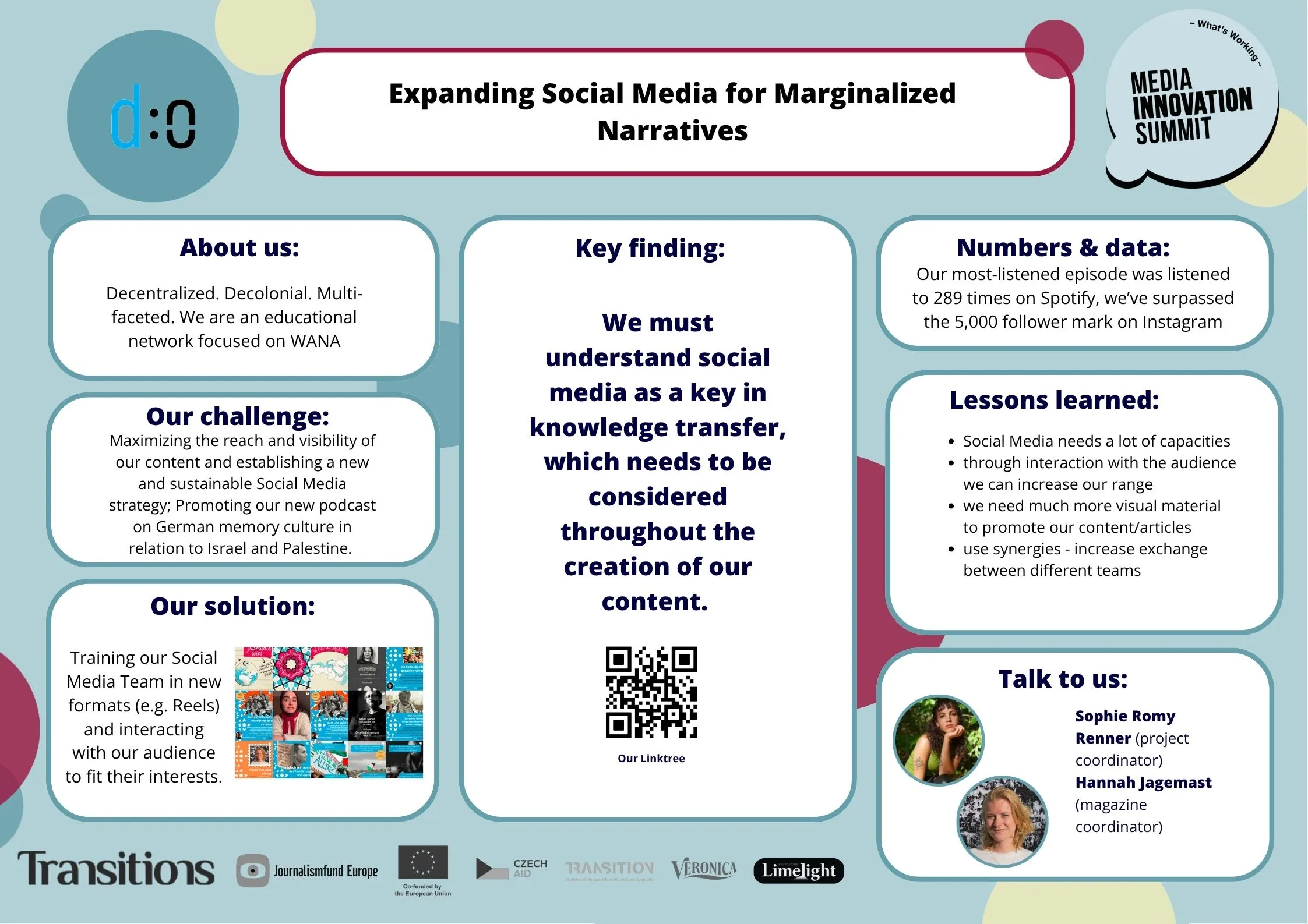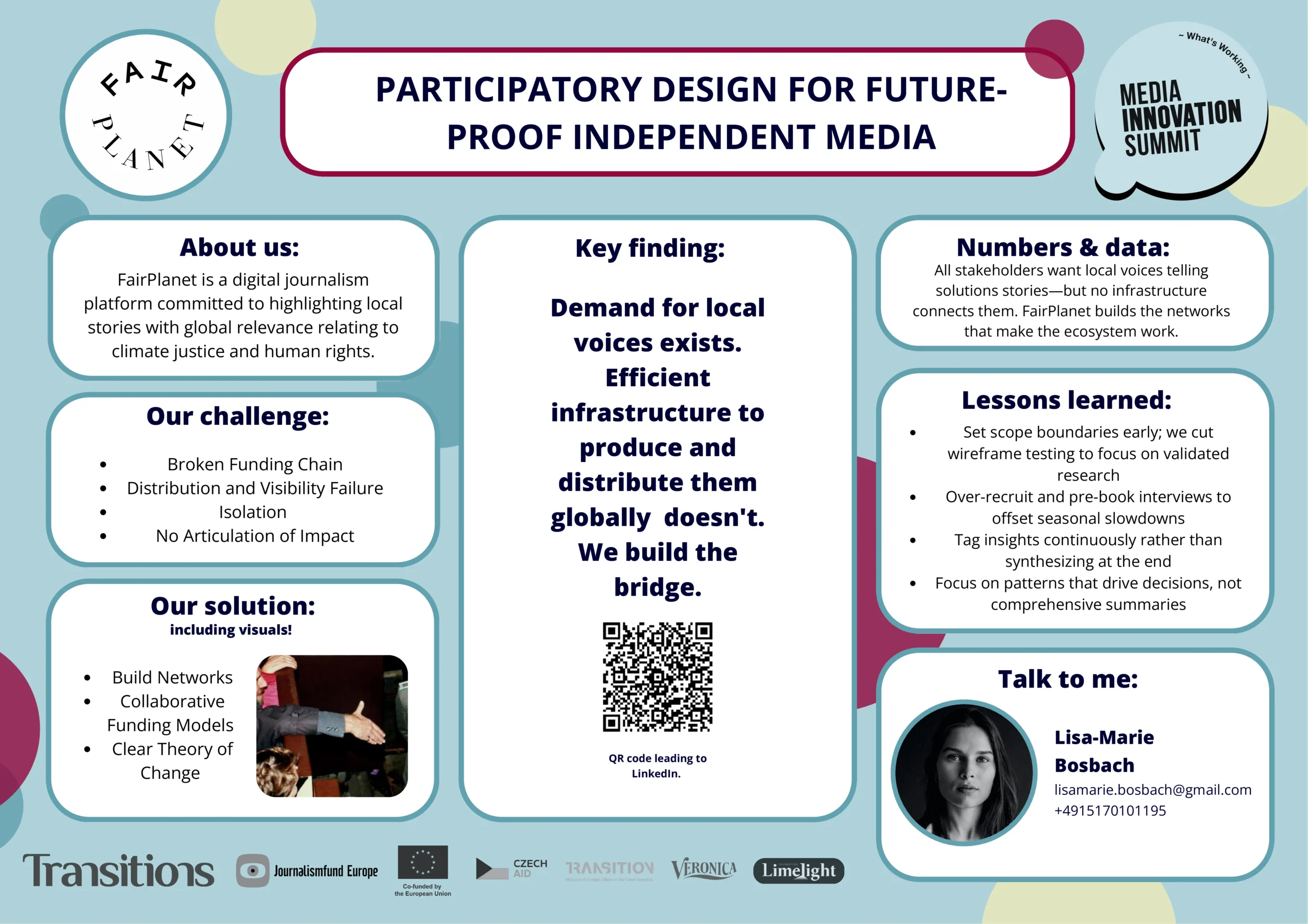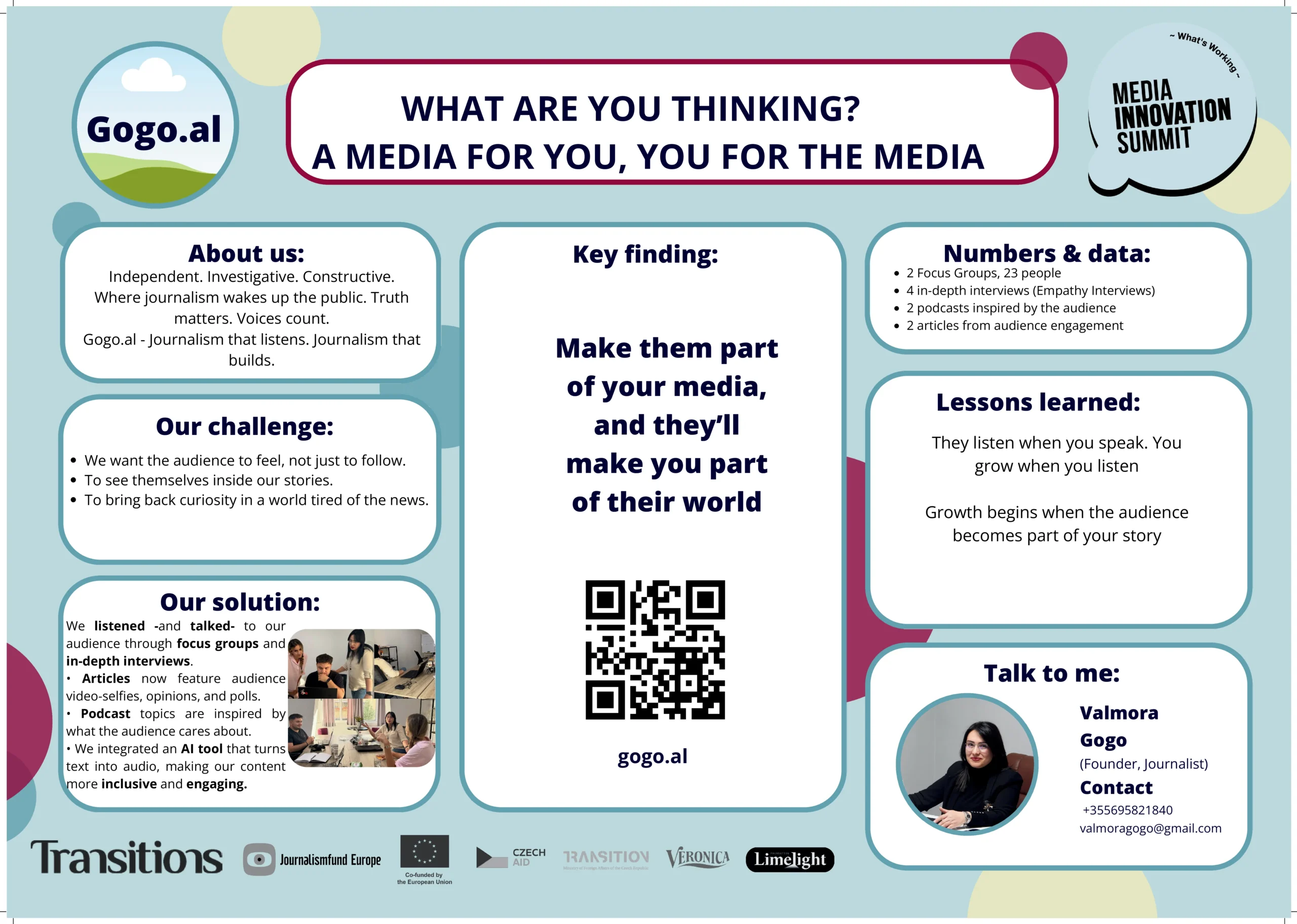 These projects were further enriched through the Media Innovation Summit, where newsroom teams came together in person to share insights, reflect on their prototyping journeys, and exchange ideas with peers from across the region. The summit provided a space to deepen learning and discuss how design thinking can become part of future newsroom strategy.