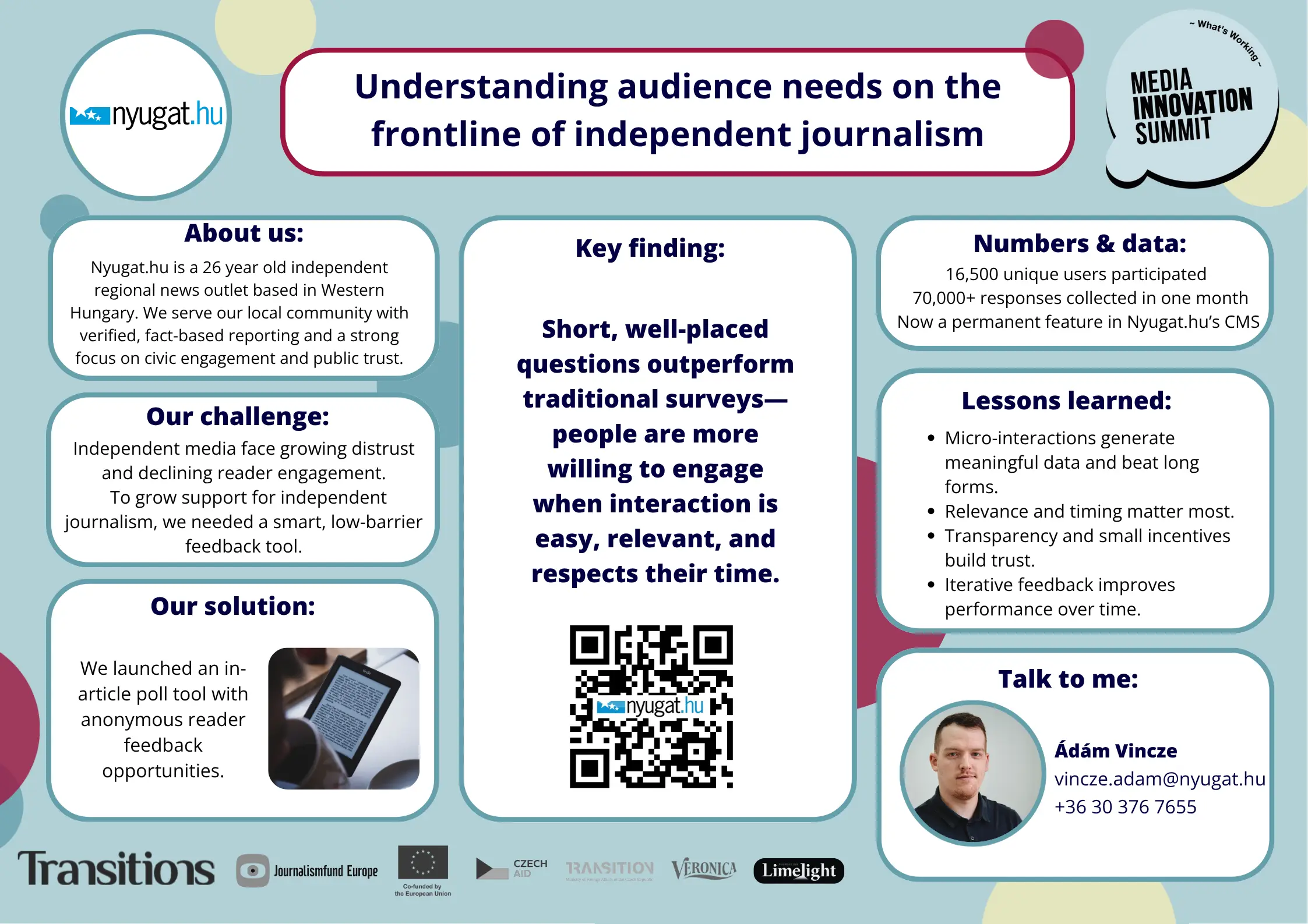 Rather than focusing on finished products alone, these case studies highlight the process of experimentation, learning, and iteration: how teams identified newsroom pain points, tested small-scale innovations, and drew lessons that can benefit other newsrooms facing similar pressures. From internal workflows to product ideas that improve audience engagement, each case reflects a newsroom’s effort to be more adaptable, user-centred, and sustainable in a rapidly changing media environment.